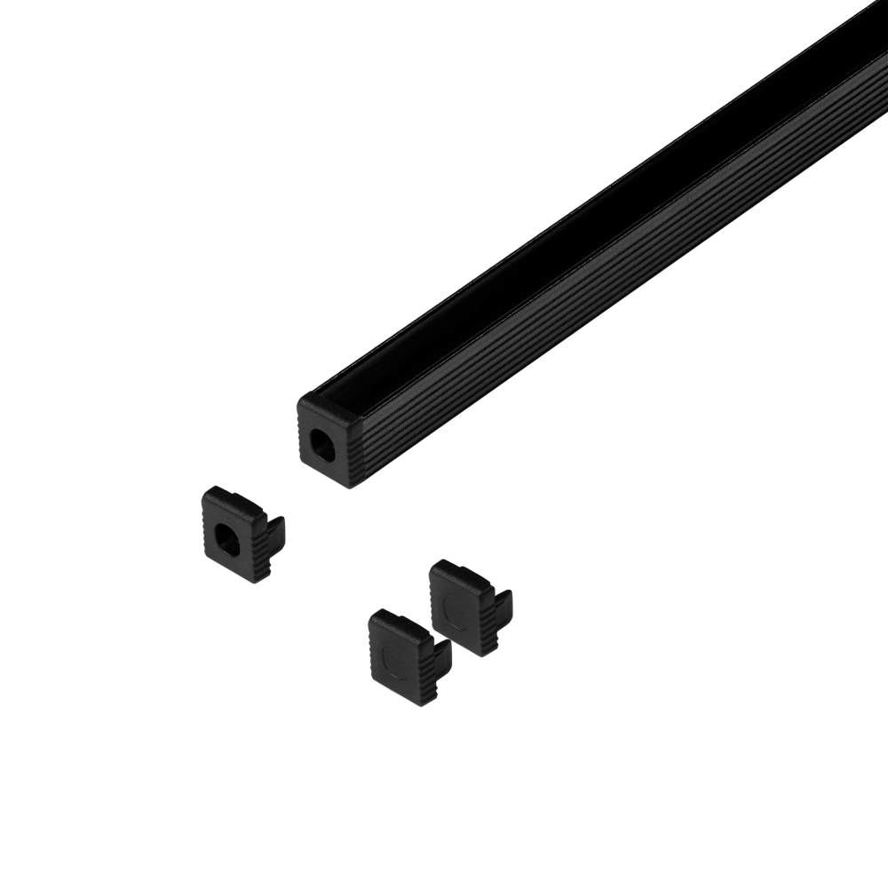 Zestaw: profil aluminiowy do taśm LED, 2000 x 7,8 x 9 mm, natynkowy, czarny, klosz czarny, 4 zaślepki
