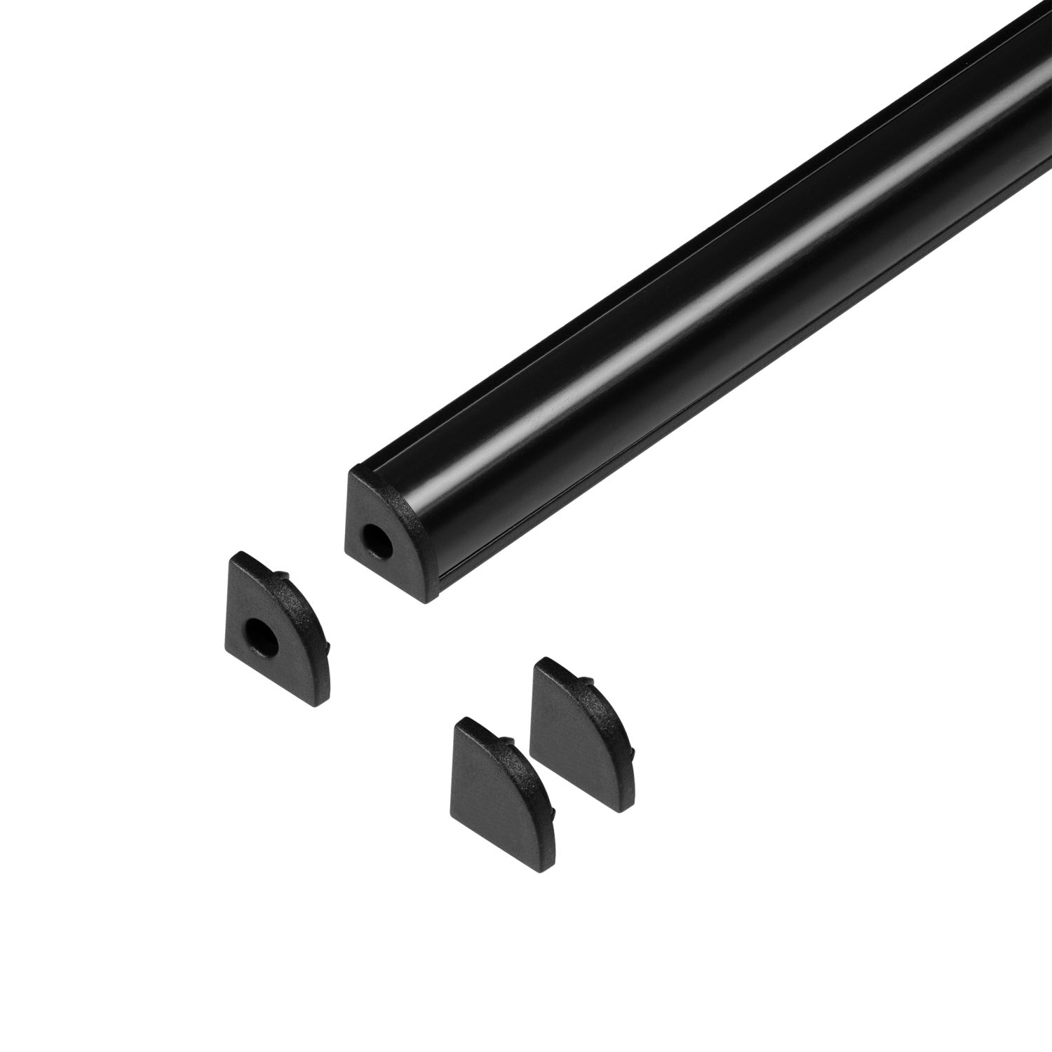 Zestaw: profil aluminiowy do taśm LED, 2000 x 10 x 10 mm, narożny, czarny, klosz czarny, 4 zaślepki