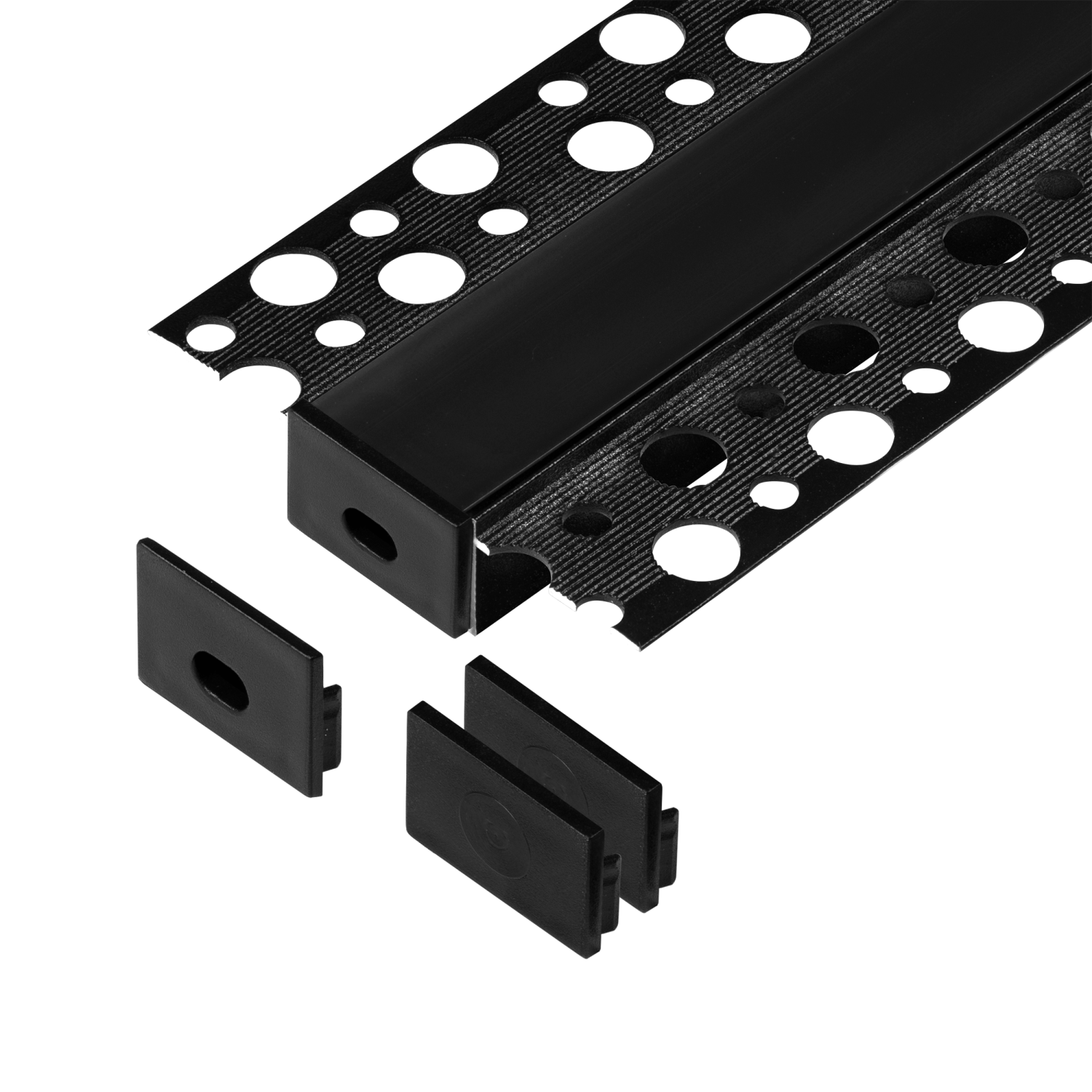 Zestaw: profil aluminiowy do taśm LED, 2000 x 55,8 x 12,5 mm, podtynkowy, czarny, klosz czarny, 4 zaślepki